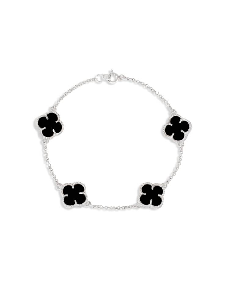 دستبند نقره ونکلیف چهار گل مشکی 0401