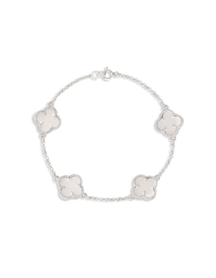 دستبند نقره ونکلیف چهارگل سفید 0401