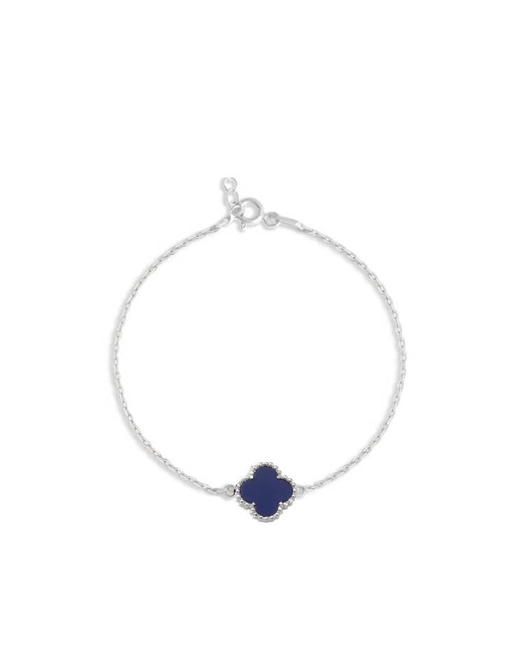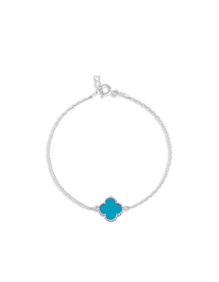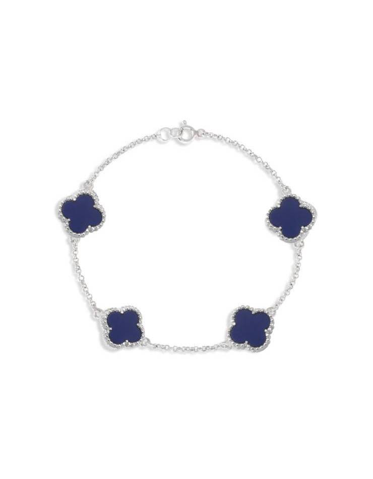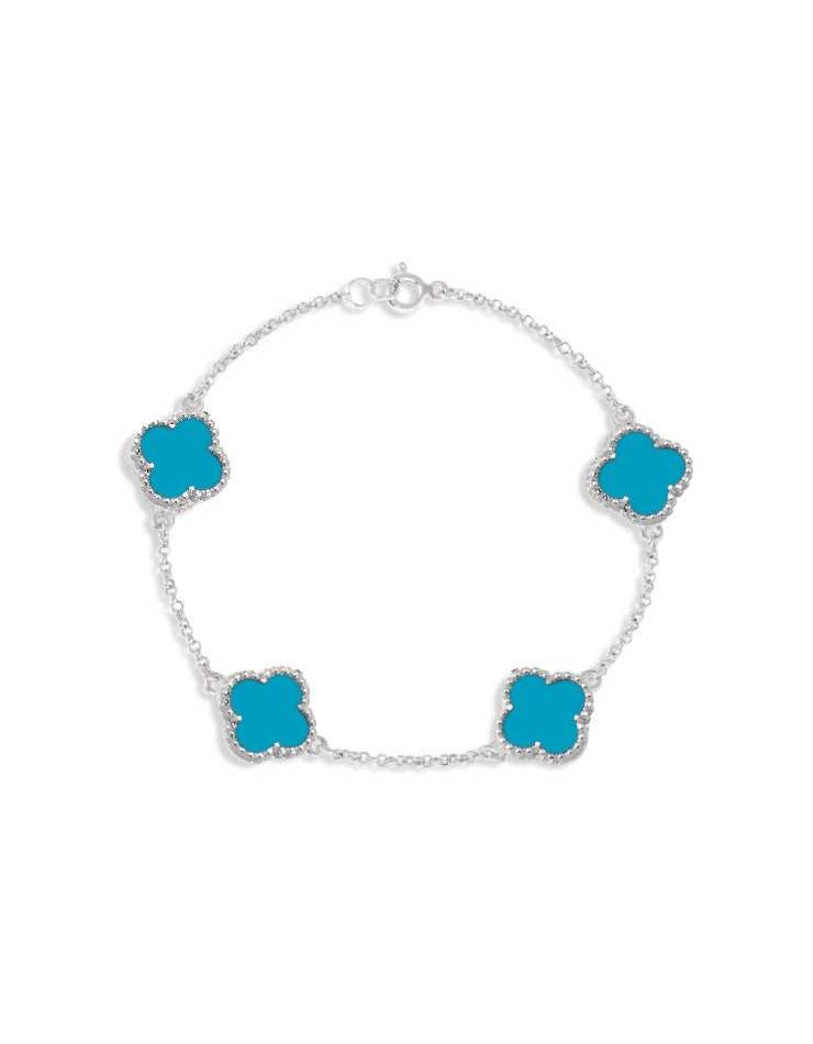 دستبند نقره ونکلیف چهارگل آبی 0401