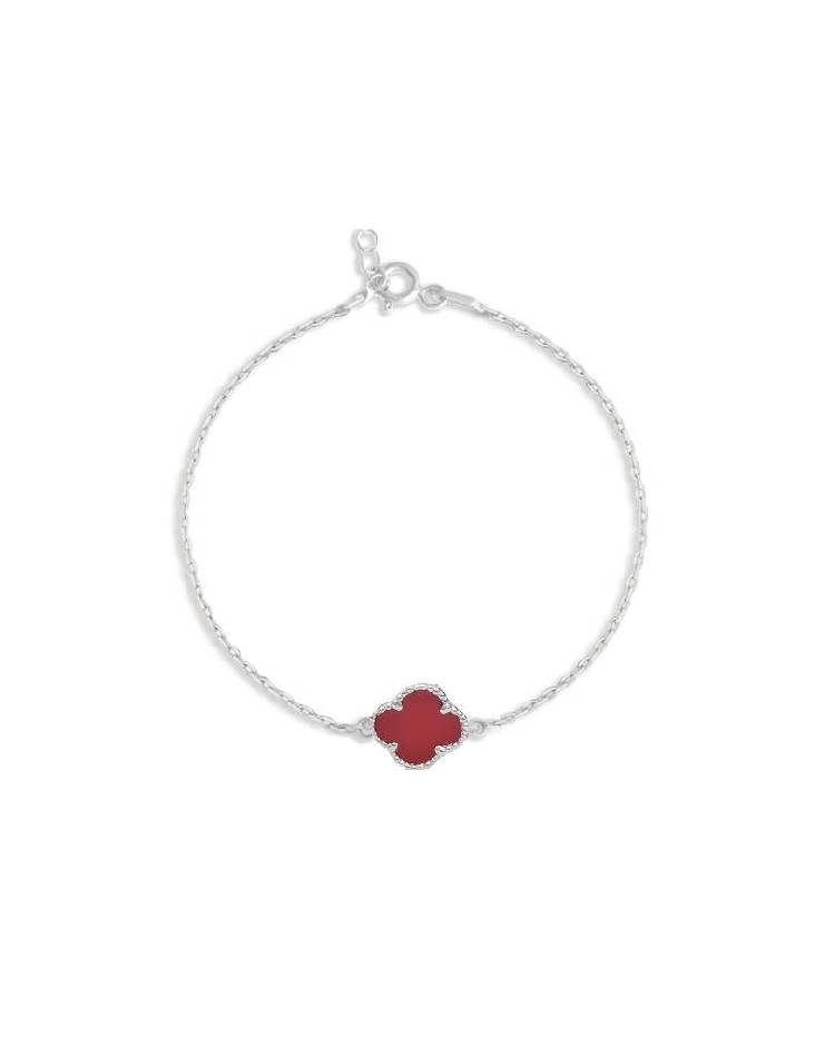 دستبند نقره ونکلیف تک گل قرمز 0200