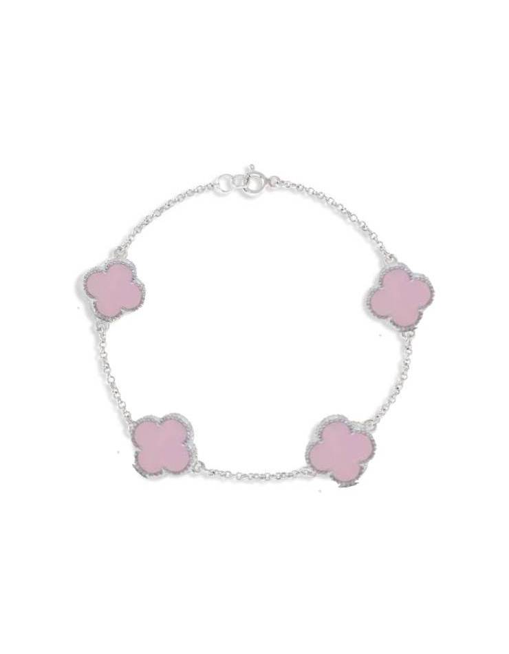 دستبند نقره ونکلیف چهارگل صورتی 0401