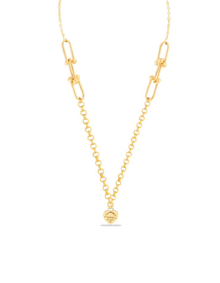 گردنبند طلا رولو و آویز قلب تیفانی