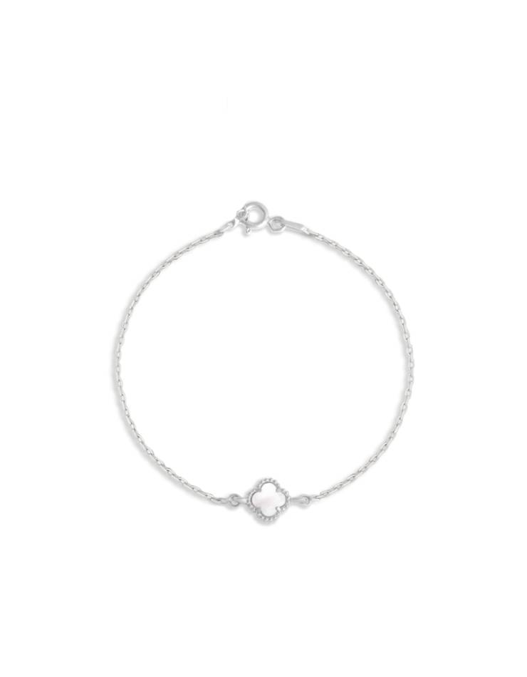 دستبند نقره ونکلیف سفید تک گل 0200