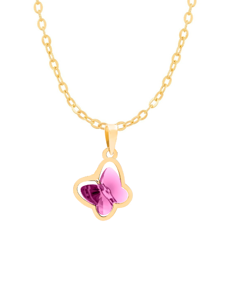 گردنبند طلا پروانه سواروسکی صورتی sh0308